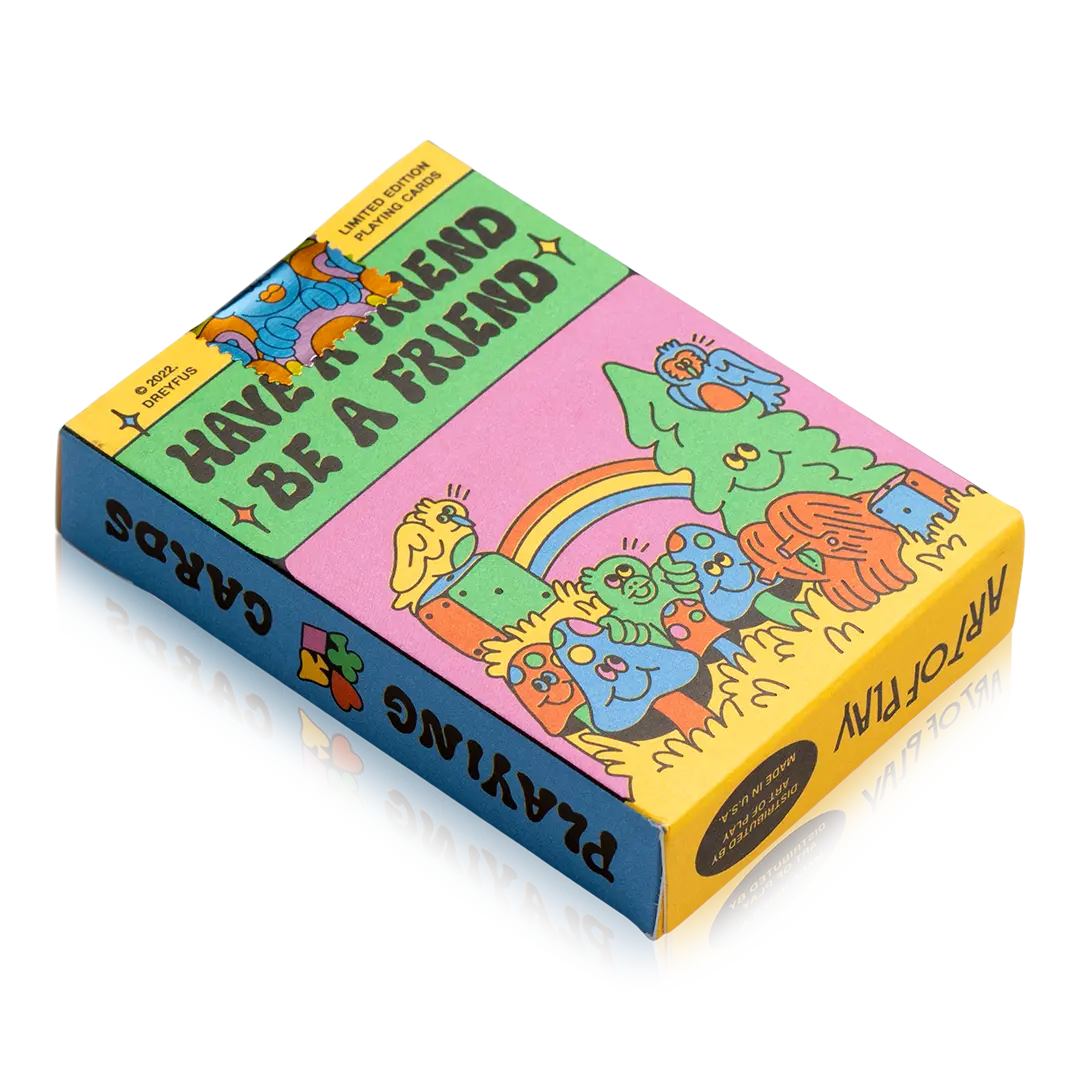 Produced in collaboration with the wildly imaginative illustrator Ashley Dreyfus this fully custom deck of cards features a colorful cast of characters drawn in a whimsical, psychedelic style.